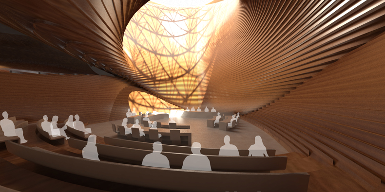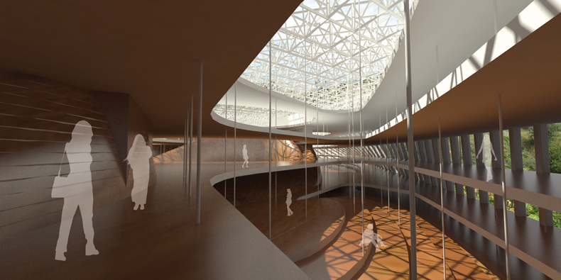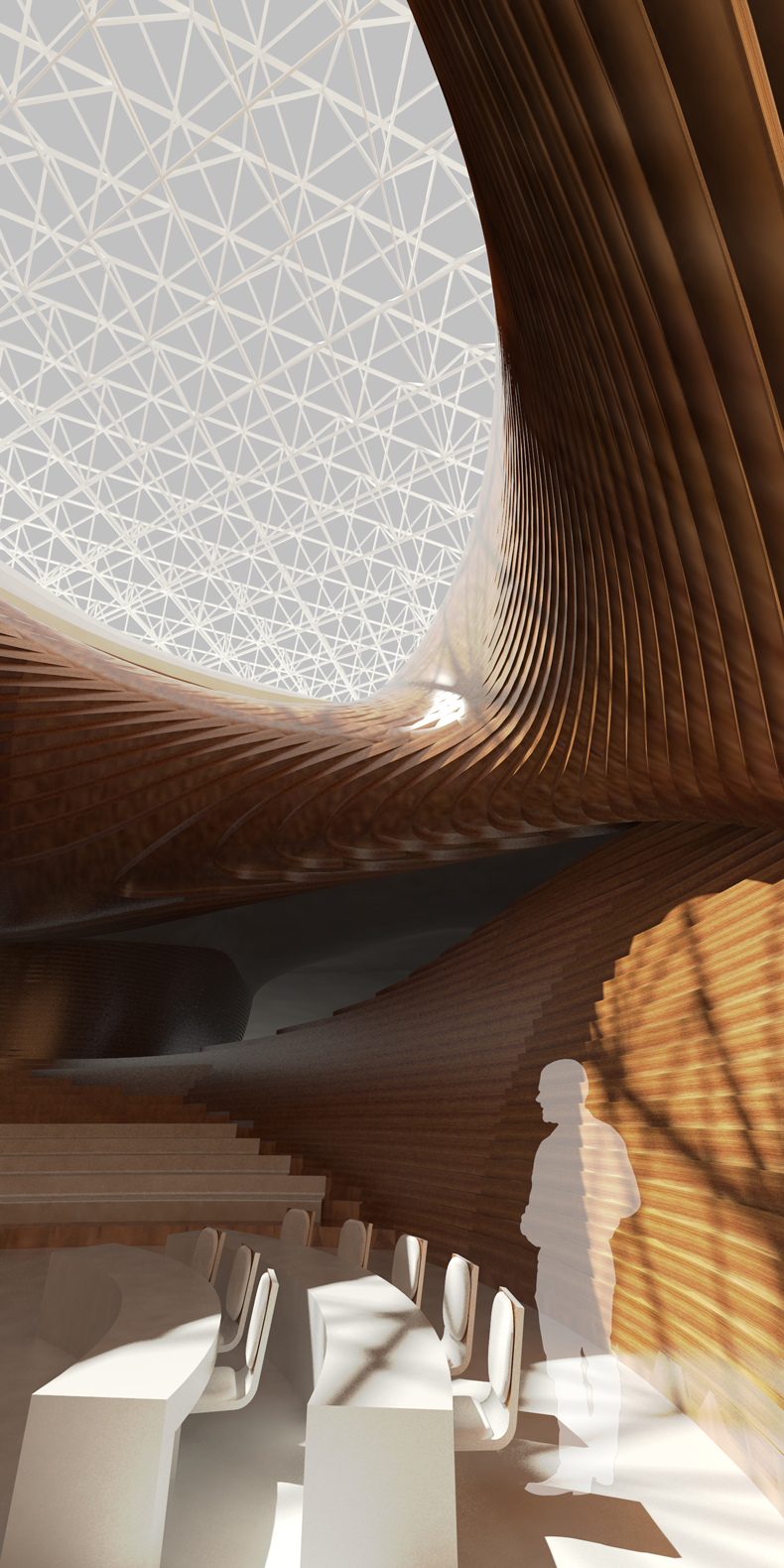 This project explores the possibility of architecture to act as a redemptive force in the face of tremendous injustice. Though this project is situated in the Hague, its ambitions are universal, it's principal critique is that the crimes which will be tried here are so heinous that there is no possibility of retribution, and so it is the mission of this architecture to seek a space for redemption, not for the criminals that pass through its bowels, but for the afflicted population who enter through its landscape.